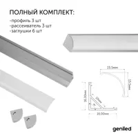 Алюминиевый профиль для светодиодной ленты Geniled угловой 1 метр 3 шт