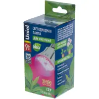 Фитолампа светодиодная для растений Uniel E27 9 Вт 250 Лм красно-синий спектр розовый свет