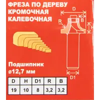 Фреза по дереву кромочная калевочная 1410303 19×10 мм хвостовик 8 мм