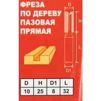 Фреза по дереву пазовая прямая 1411502 10×25 мм хвостовик 8 мм