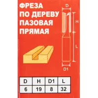 Фреза по дереву пазовая прямая 1411514 6×19 мм хвостовик 8 мм