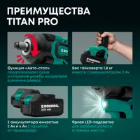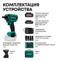 Гайковерт аккумуляторный бесщеточный Rokodil Titan 1050002, 20 В Li-Ion 1×2 Ач и 1×4 Ач, 350 Нм