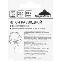 Ключ разводной с тонкими губками Vertextools 2110-200 захват 40 мм, длина 200 мм