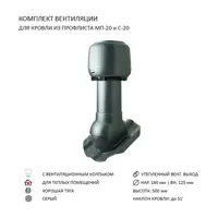 Колпак Polivent D160 с вентиляционным выходом утепленный Н500 для кровельного профнастила 20 мм цвет серый