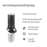 Колпак Polivent D160 с вентиляционным выходом утепленный Н500 и проходным элементом универсальный цвет серый