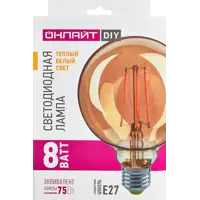 Лампа филаментная Онлайт G125-8-230-2.7K-E27-GD E27 220-240 В 8 Вт шар 810 Лм теплый белый свет
