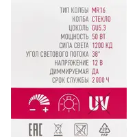 Лампа галогеновая Онлайт MR16 GU5.3 12 В 50 Вт спот 560 Лм теплый белый свет для диммера