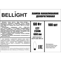 Лампа накаливания Bellight Е27 230 В 60 Вт свеча 660 лм теплый белый цвет света для диммера
