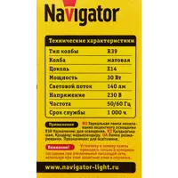 Лампа накаливания Navigator E14 230 В 30 Вт гриб 140 лм