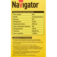 Лампа накаливания Navigator E27 230 В 40 Вт гриб 450 лм
