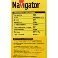 Лампа накаливания Navigator E27 230 В 60 Вт гриб 4000 лм теплый белый свет