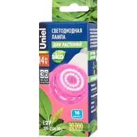 Лампа светодиодная для растений Uniel E27 220 В 14 Вт груша прозрачная 420 лм розовый свет