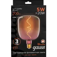 Лампа светодиодная Gauss Filament V140 E27 265 В 5 Вт фигурная 200 лм теплый белый свет цвет розовый
