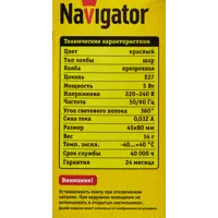 Лампа светодиодная Navigator E27 240 В 5 Вт шар 240 лм цвет красный