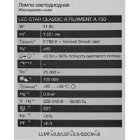 Лампа светодиодная Osram А E27 220/240 В 11 Вт груша 1521 лм теплый белый свет
