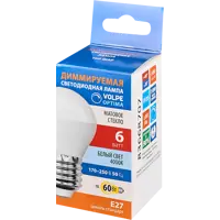 Лампа Volpe Е27 6 Вт DIM шар матовая 600 Лм холодный свет
