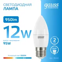 Набор ламп светодиодных Gauss Elementary E27 12 Вт Свеча 950 Лм 6500 К холодный белый свет, 10 штук