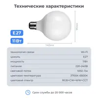 Набор умных ламп светодиодных SLS-LED-05WFWH E27 220-240 В 11 Вт шар матовая 1050 Лм RGB управление смартфон WiFi модуль