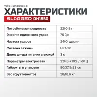Отбойный молоток сетевой Slogger DH1850, 2200 Вт, 75 Дж