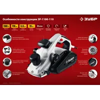 Рубанок сетевой Зубр ЗР-1100-110, 1100 Вт, 110 мм