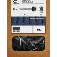 Саморезы кровельные по дереву Standers с пресс-шайбой RAL7024 4.8×51 60 шт.
