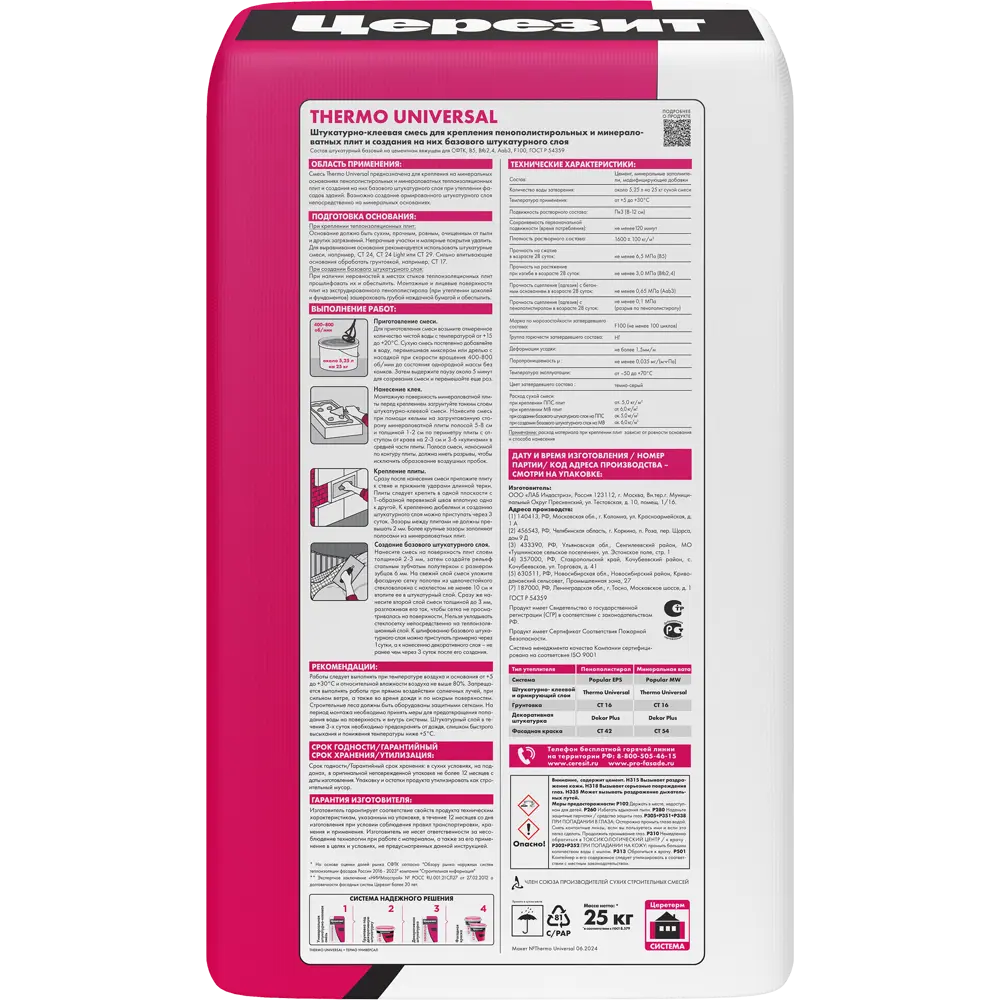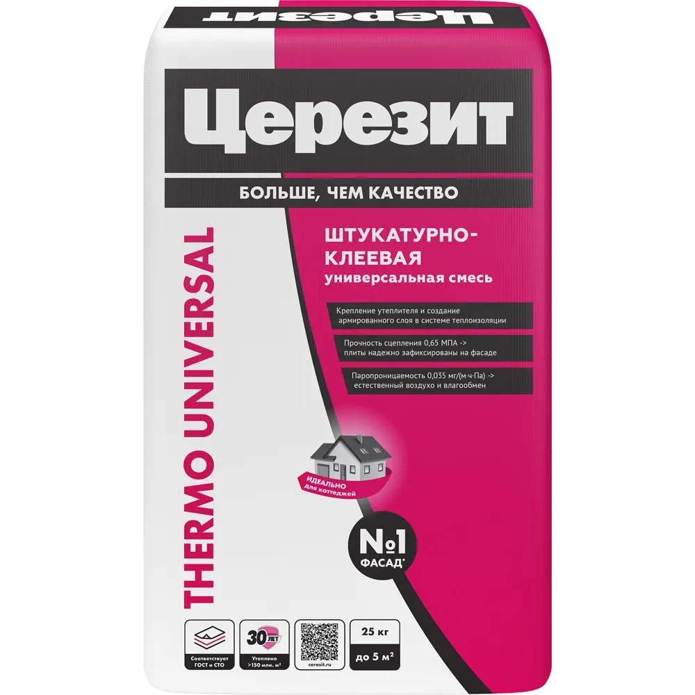 Штукатурно-клеевая смесь Церезит Термо, 25 кг — специализированный материал для приклеивания и выравнивания теплоизоляционных плит. Обеспечивает прочное и долговечное сцепление, повышая энергоэффективность фасадных систем. Подходит для наружных работ в составе утеплительных комплексов.