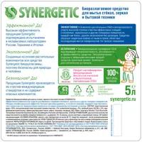 Средство чистящее для стекол и зеркал Synergetic 5л