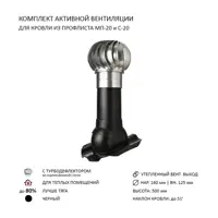 Турбодефлектор Polivent TD160 ОЦ утепленный Н500 для кровельного профнастила 20 мм цвет черный