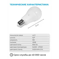 Умная светодиодная лампа SLS LED-01 RGB E27 220-240 В 9 Вт груша матовая 806 Лм изменение цвета RGB управление со смартф